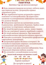 Шановні батьки, з вашими дітьми перед виходом на канікули було проведено бесіду щодо попередження усіх видів дитячого травматизму під час канікул. Прохання проводити такі бесіди вдома та радити дітям дотримуватися правил поведінки для збереження їх життя та здоров'я. Закликаємо учнів та батьків завжди пам`ятати елементарні правила безпеки під час канікул, щоб приємний відпочинок не був зіпсований.